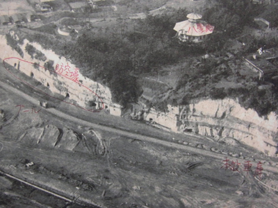 投稿されたものと同じ、1958(昭和33)年の写真。崖下に防空壕の穴が開いている