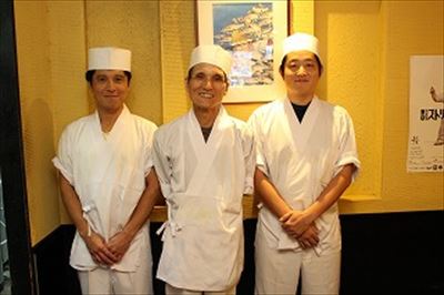 そんなお客さんたちを料理と軽快なトークでもてなすのが、店長の安藤準(あんどう・ひとし)さん。18歳でこの道に入り、寿司職人歴40年以上のベテランだ。31歳のときに魚臣に入社し、自由が丘店と都立大学店を経て日吉店勤務となった。特盛を始めたのも安藤さんだ。