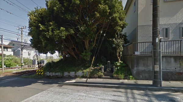 横須賀線と並行して走っているのが、国道16号線、横須賀街道。この2つに挟まれるような場所に「轢死(れきし)者供養の塔」はある。