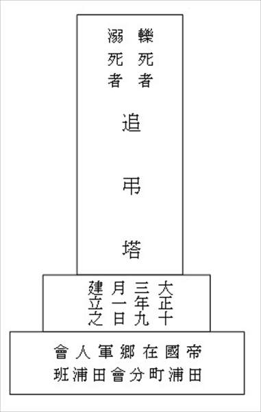 供養塔の碑名は「轢死者溺死者追弔塔(れきししゃ・できししゃ・ついちょうとう)」。1924(大正13)年9月1日に建立されたものだ。
