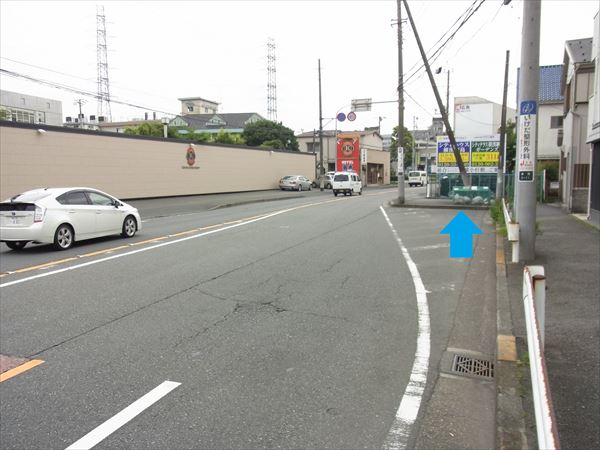 三角形の道路局の土地がある場所(青矢印)