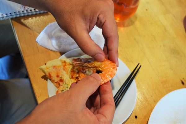 殻をむいてパクリ。今流行りの手づかみシーフードみたいで楽しい!