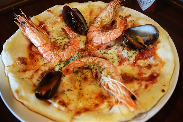 「海老とムール貝のピザ」
