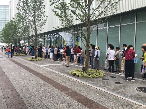 午前9時の開店を前に、すでに行列。150人はいる様子