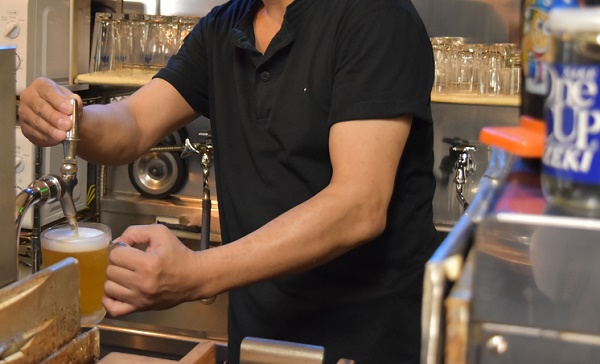 常連さんから「社長」と呼ばれる店主にお酒をお願いする