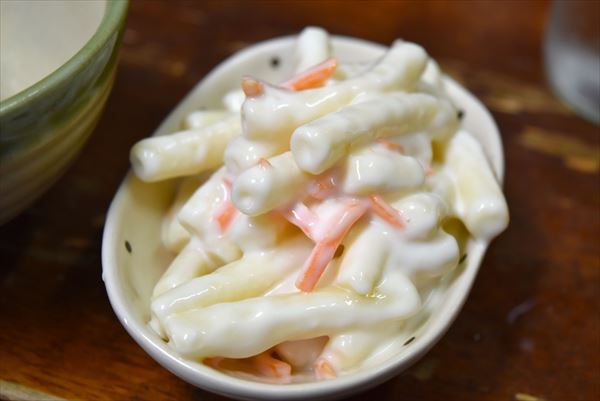 マカロニサラダはよくコンビニでも購入する。我慢できないと袋のままいってしまうくらい好きだし、卵も1日2個食べてしまうくらい好物だ。自宅でもここまで気の抜いた食事はしないけど、角打ちなら許してもらえる気がしてのチョイスだ。至福である。