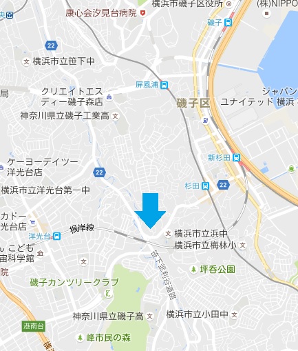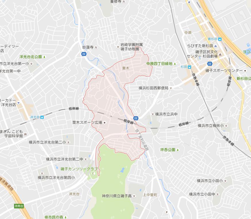 駅建設が浮上した磯子区栗木(赤枠内)(Googlemapより)