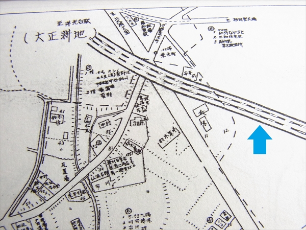 開通した線路(青矢印)(昭和46年磯子区明細地図)