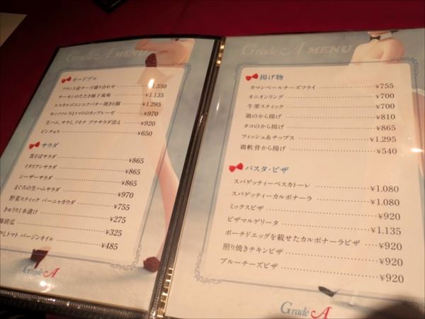 席に着き、まずキニナったのがメニュー。ホテルのダイニング・・・しかもショーを見ながらなんてさぞかし高いのでは・・・と身構える。