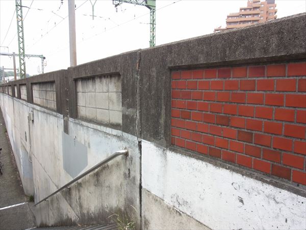 京急線能見台駅近くの線路沿いに建つレンガ造りの壁の正体とは?