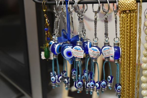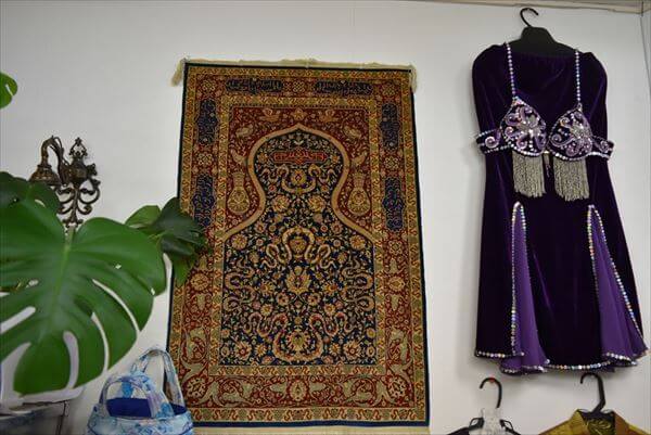 お手ごろな商品から、「え、なぜこんな値段のものが!?」という高額なものまで、美樹子さんとご友人が作った洋服、トルコの魔除け、ベリーダンスDVD、絨毯などさまざまな商品を販売している。