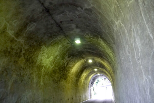 補修工事中で車の進入は制限されているものの、トンネル内は歩行者の通行は可能な状態だ。早速失礼してみよう。