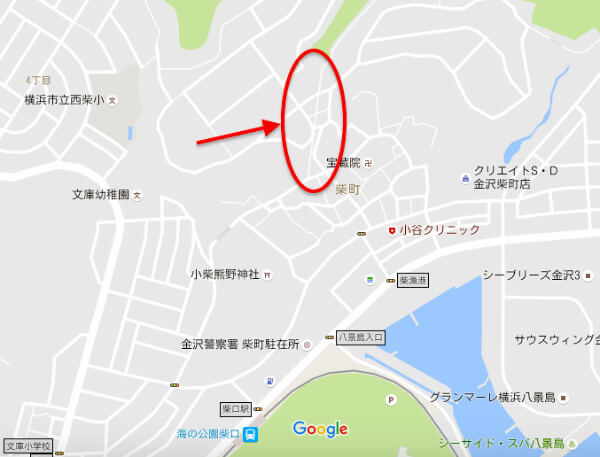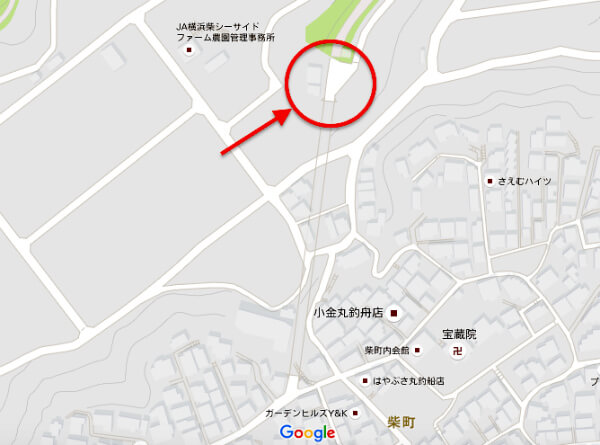 金沢区東部、シーサイドライン「海の公園柴口」駅より北に500メートルほど歩く