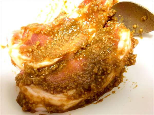 やまゆりポークも、本当は塩コショウだけでシンプルに味を付けたいところだけど、塩が使えないので、こちらも醤油麹で漬ける。