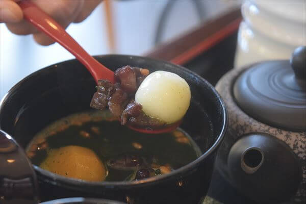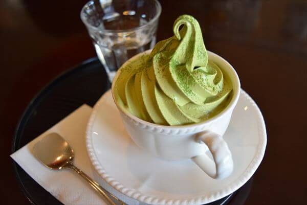 抹茶ソフトやぜんざいに使用しているお茶は、静岡県の朝比奈茶。香り、渋み、甘みのバランスが良く、惜しみなく使用しているので濃厚さが特徴だ。