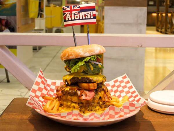 ハワイからやってきた「テディーズ ビガー バーガー」。話を聞く限りおいしいハワイアンなハンバーガーショップという印象だが、今回のテーマである「インパクト大!」メニューとは、一体どんなものか。