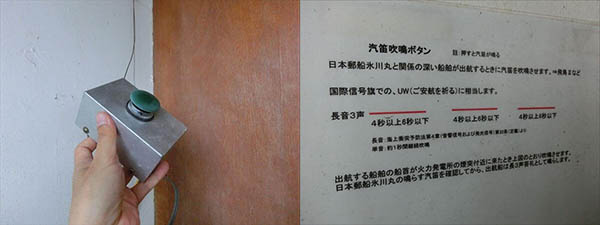 現在、氷川丸は走らない。文化遺産として整備され、汽笛(装置=ボタン)は操舵室ではなく事務所と、Bデッキ左舷後方に取り付けられている。