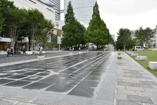 広大でフラットな噴水部分は、ここも通路のよう。水は出ていなかった