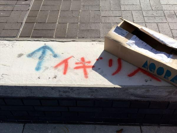 そして投稿にもあったように、スプレーで国名が書かれた何かがあった。