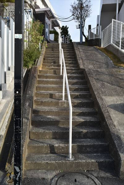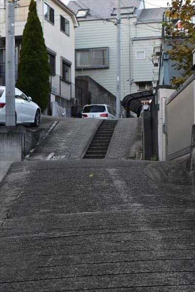 配達中の郵便局の方にも声をかけてみる。「車が通れる階段? 知っていますよ。住宅地の中でもいいんですよね?」「マジですか?(思わず本音が・・・)。」やった! ついに発見か? 「場所を教えてください!」とお願いすると、さすがは郵便局の方、すぐに住所を番地付きで教えてくれた。プロフェッショナルである。さっそくスマホで検索する。おお! ここか。丁重にお礼を申し上げ、教えてもらった住所に向かう。