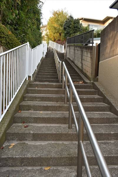 まずは東口から調査開始。Googlemapで確認しつつ、周辺を歩いてみる。すると、階段がたくさん存在する土地であること、そして階段にもさまざまなものがあることが分かってきた。