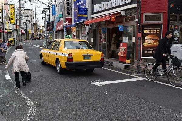 次にタクシー乗務員の方にお話を聞こうと白楽駅まで戻る。白楽駅にタクシー乗り場はなく、駅前の道路は商店街&一方通行なので路上駐車し客待ちをしているタクシーも皆無だ。しかたがないので、「止まれ」の標識のそばで、一時停止したタクシーに突撃することにした。