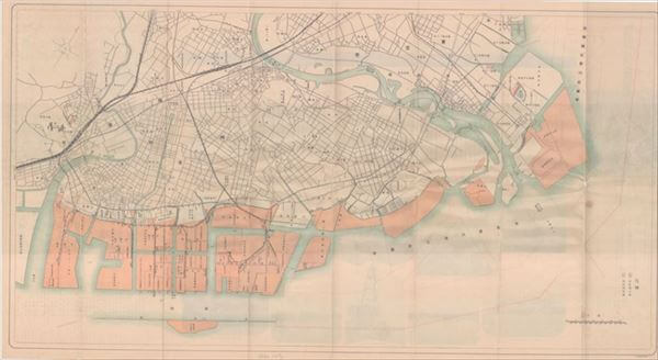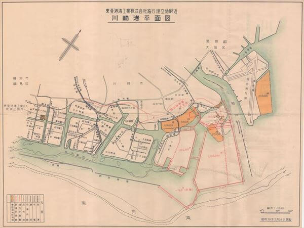 1954(昭和29)年の東亜港湾工業株式会社施行埋立地付近川崎港平面図(同社提供)