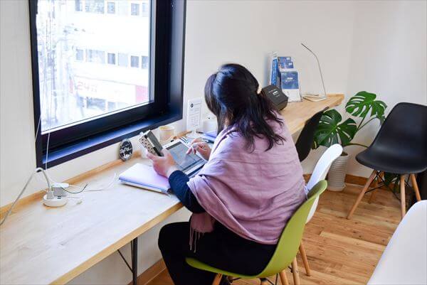 「行政書士として、女性の開業のお手伝いを何度もしてきました。自宅で開業するケースが多いのですが、そうすると名刺に住所を記載しない、できないことが大半です。それってビジネスとしてどうなのかなと。拠点としてしっかり名刺に書ける住所があれば信用にも繋がると思い、ここをオープンしました」と保坂さん。