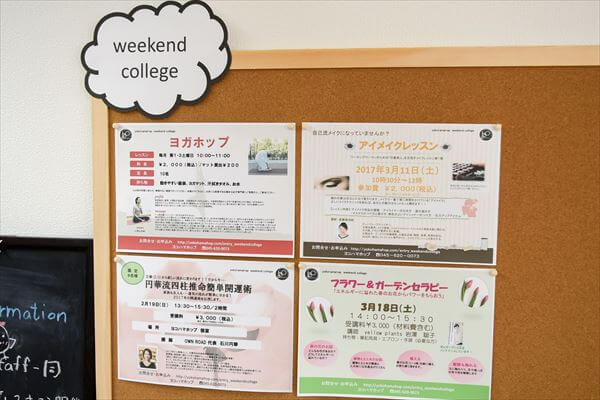 さらに驚くべきことに、受付業務の大半を会員さんが順番で受け持っている。しかしここは、本気で仕事をする人の集団。受付はもちろん、ウィークエンドカレッジ運営のマネジメント業務などにも、運営サイドからしっかりと対価が支払われている。