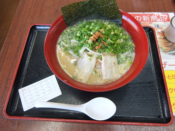 福岡産の小ネギをたっぷりと使用した、同PA一番人気のメニュー。豚骨スープに鶏と野菜を加えた、あっさりなのに濃厚という、何とも絶妙な一品。PAってこれからお仕事の人から仕事や観光帰りの人まで、いろいろな状況の人が利用する。こちらはどんな時でも食べやすい味わいで、ボリュームも申し分なかった。