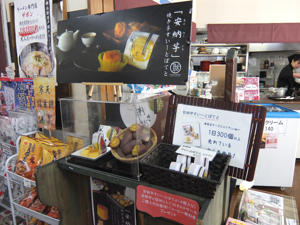 安納芋すいーとぽてとは、正真正銘の同社オリジナル商品。イチゴより甘いという、糖度16度の安納芋をやわらかあくほっくりとした、スイートポテトに仕上げている。海老名SAでは1日300個も売れている人気商品だという。