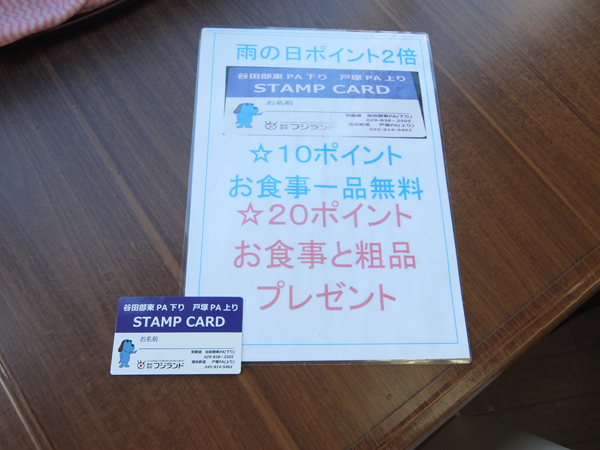 1回500円以上の食事につき1つ、雨の日は2つスタンプがもらえるカードもある