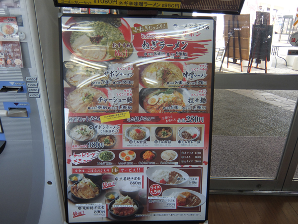 2015年は戸塚食堂という、定食やカレーライス、ソバ、うどんなどが食べられる昔ながらのメニューを置いていたお店だったが、2016(平成28)年に海老名SAで人気があった九州ラーメン専門店「ザボン」として営業している。