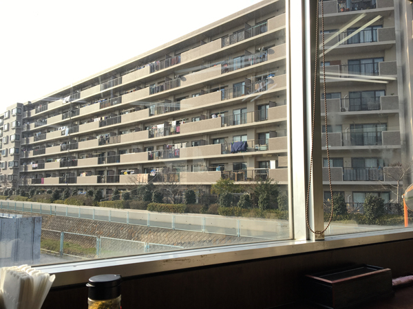 見どころは窓から見える地元も風景と、有名店のラーメン。