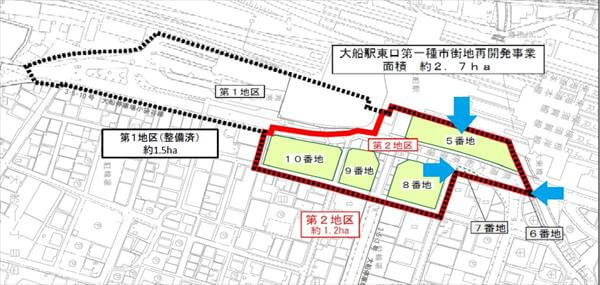 「鎌倉市では東口再開発事業第1地区に引き続き、第2地区の早期事業化を目指している」とある。