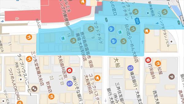 現在の地図にあわせると第2地区(青枠)(Googlemapより)