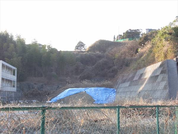 その場所の山沿いに、山を削って工事を行ったと思われる場所がある。ここが投稿のトンネル工事の現場のようだ。