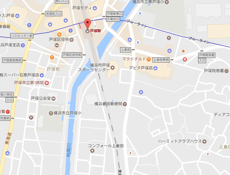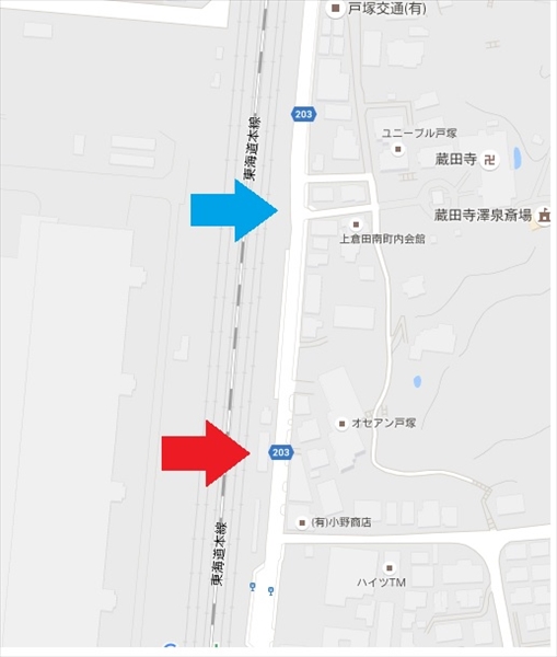 戸塚駅東口から上倉田交差点を通る(Googlemapより)