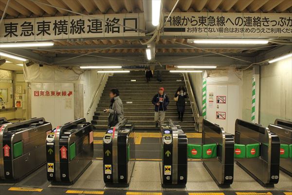 階段を降りると右側に東急との連絡口、左側に出口がある