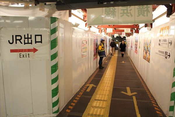 このように、ホームへの昇り降りが階段しかないのはもちろん、1日24万人もの方々が利用する規模の駅とは思えないほどの窮屈さである。さらに、現在は工事によって通路が狭くなっている状況である。