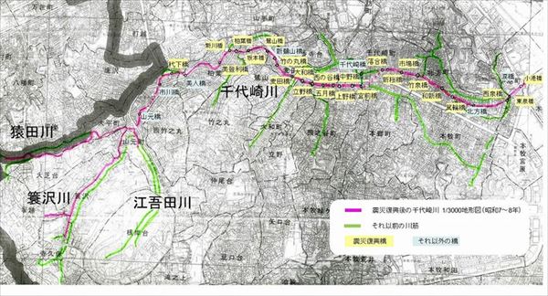 震災後数年間の間に、24の橋──小港橋・東泉橋・西泉橋・箕輪橋・和新橋・竹泉橋・市場橋・新桜橋・落合橋・宮前橋・中野橋・上野橋・西の谷橋・五月橋・立野橋・大和橋・麦田橋・竹の丸橋・鷺山橋・坂本橋・柏葉橋・新川橋・美登利橋・杙下橋 ──が架けられた。現在では“震災復興橋”として記録に残されている。