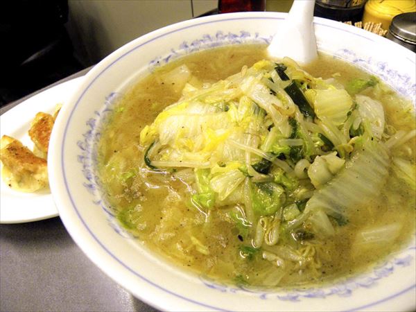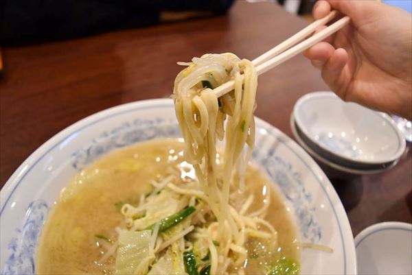 ふむふむ、見た目は旧三幸苑のほうがダイナミックだが内容は同じ。どちらもモヤシとハクサイとニラと豚バラ肉を炒めた具と、真っ白なスープ。