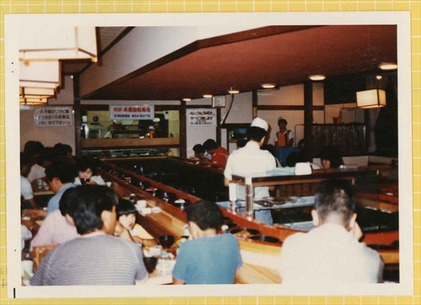 創業当時は、レーンではなく水のコンベアに寿司桶を浮かして寿司を提供しており、それがかっぱの頭の皿が浮いているように見えたため「かっぱ寿司」という名前になったそうだ。昔の写真も見せていただいた。