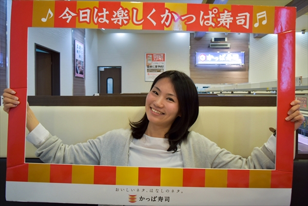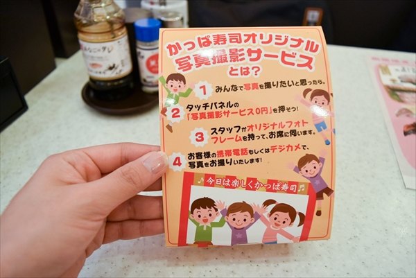 牛尾さん「かっぱ寿司のオリジナル写真提供サービスです。タッチパネルで写真サービスのアイコンを押してもらうと、店員がフォトフレームを持っていきます」