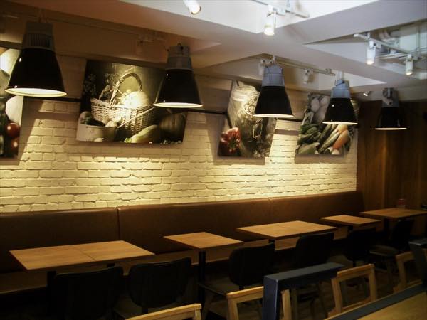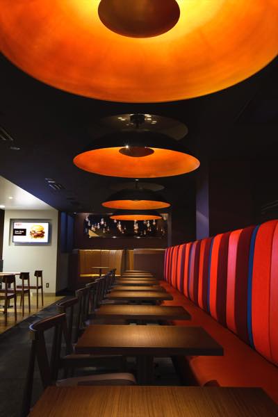 六本木店では、実際に工場で使用された照明を利用したり、家具などにも使い古した質感を出したりと工夫を凝らしたという。原色使いでポップな感じだった以前のウェンディーズとは、かなり雰囲気が変わったようだ。