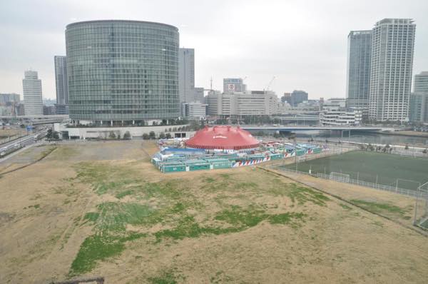 みなとみらい店上階の窓からはサーカステントが見える
