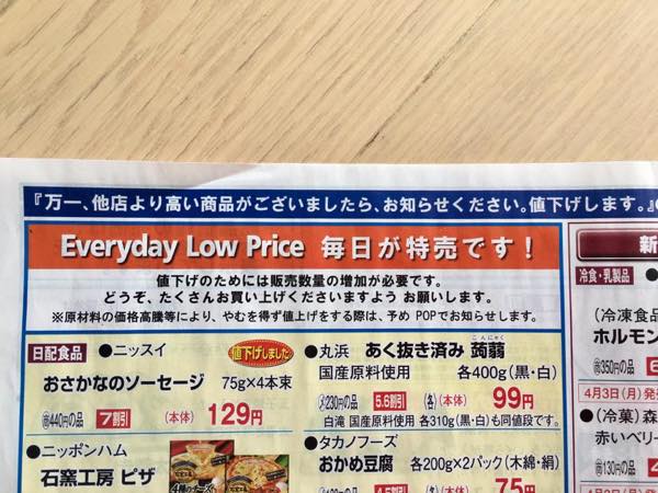 だから安いのね! チラシでもしっかり宣言