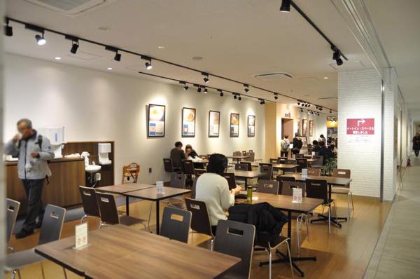 178席も用意された広大な食堂。注文は券売機による前払い制