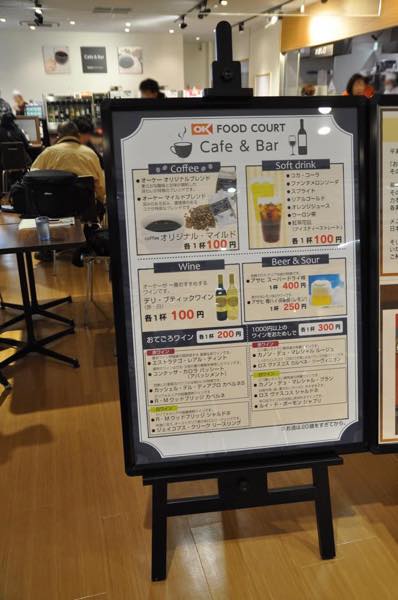 ここでは、1杯100円でジュースやオーケーオリジナルのコーヒーなどのソフトドリンクが飲めるほか、なんとワインが1杯100円から飲めてしまうというから驚きだ。