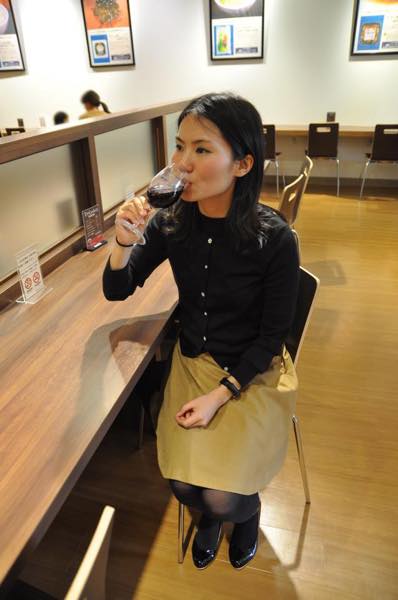 フードコートでワインを味わう広瀬女史